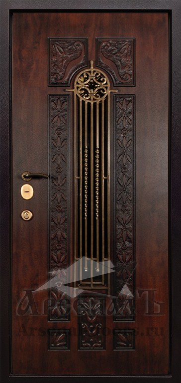 - порошковое напыление + панель МДФ шпон (устанавливают обычно в квартиру или как входную в частный дом),